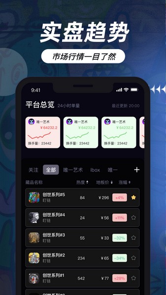 3、提供准确快速全面的实盘数据,实时自定义行情提醒,用数据帮助数藏爱好者发现价值。