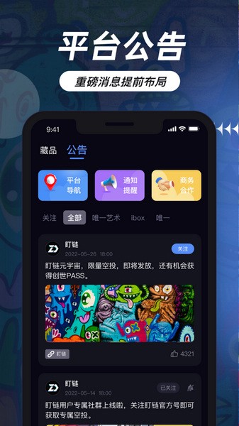 1、实时公告,线报资讯等等功能内容,可以帮助用户更好的发现数字藏品价值。