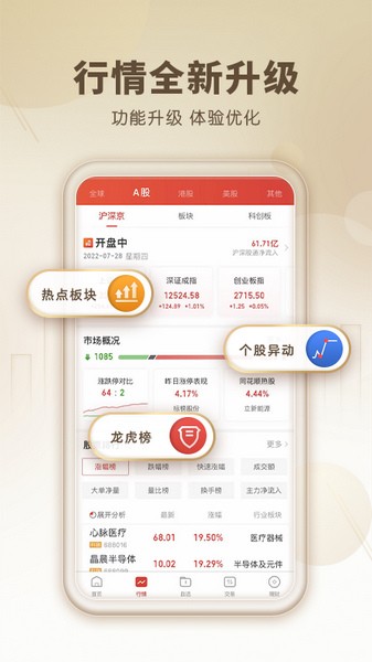 中山赢者手机版是一款由中山证券开发的手机炒股软件,专为投资者提供各种股票和证券服务。这款软件功能挺强大的,不仅能让用户随时查看最新的股市行情,还能直接进行买卖交易,操作起来很方便。软件里有很多特色功能,比如融资融券、基金定投等,基本上能满足大部分投资需求。最让我觉得方便的是它的资讯功能,可以实时监控市场资金流向,把握主力动向,这对炒股的人来说挺重要的。