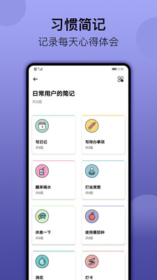 小习惯日常打卡是一款日常生活习惯打卡监督工具。用户可以在软件上提前制定好日常打卡计划,设定好时间和内容,等到时间到软件会自动提醒用户打卡去处理事务。软件内有多种打卡计划的模板,用户可以选择直接套用模板然后修改细节,也可自定义模板,制作一个自己专属使用的打卡计划。此外这款软件也可用于记录日常生活中发生的事情,写成每天的日记,养成每天做好计划的习惯。