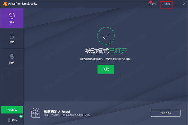 12、被动模式。使您可以与Avast Premium Security一起在PC上安全地使用其他防病毒软件。