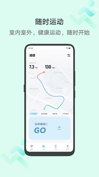 2)通过手机记录户外跑、室内跑、健步走、骑行等运动数据。