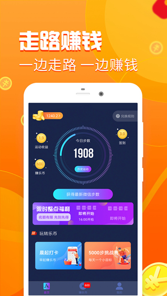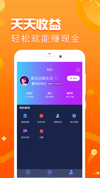3、签到赚钱:晨起打卡步数挑战,每天5000步健康又赚钱;天天爱计步,生活更健康,出行更环保,收益蹭蹭上涨