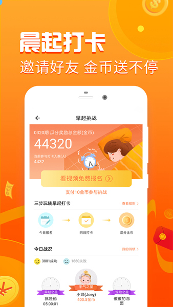 3、晨起打卡步数挑战,每天5000步健康又赚钱;