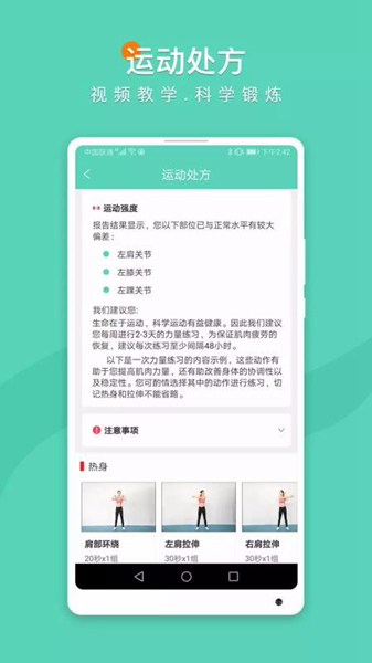 5、科学运动方案,喜欢运动健身的人可以在此得到运动处方的教学视频;