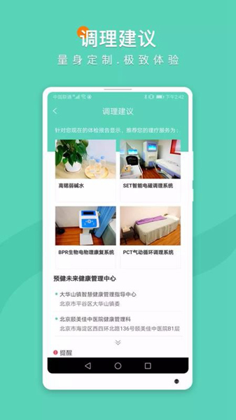 4、定制调理建议,根据用户的健康分析报告而量身定制了对应的身体调理建议;