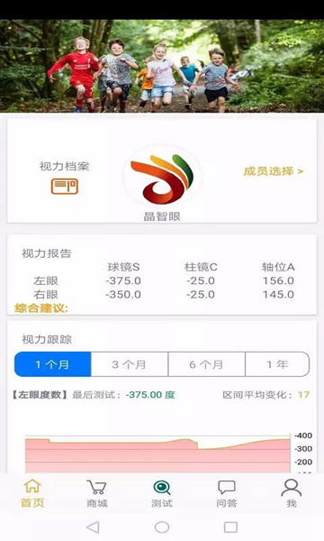 这个APP还有一个在线商城,可以买到很多健康相关的产品。它的特色功能还挺多的,比如可以创建全家人的视力档案,随时切换查看不同成员的数据;还能跟踪视力变化,生成统计图表,这样就能直观看到眼睛度数的变化趋势了。另外,软件还会根据测试结果提供建议,帮助用户更好地保护视力。