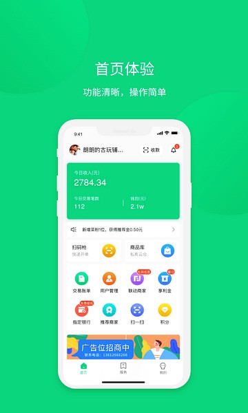 菜信商圈的界面简洁易操作,扫码即可快捷收款。