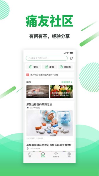 为用户提供高尿酸控制、痛风科普等相关知识的分享平台,帮助痛风高尿酸病友有效进行健康管理、