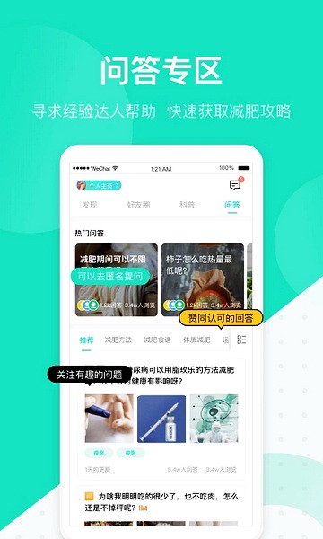 4、在动态版块还可以发现更多精彩的问答,与其他用户一起分享瘦身心得。