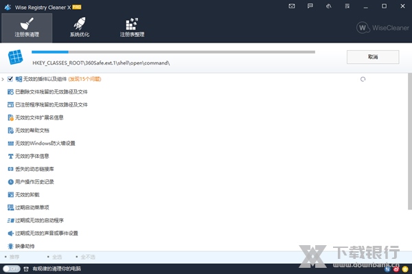 Wise Registry Cleaner破解版是一款注册表清理优化神器,随着我们电脑长时间的使用,电脑中会有一些垃圾注册表文件会影响我们电脑的性能,这时我们需要统优化工具来对自己的电脑进行清理提高我们电脑的工作性能。该软件能够帮助你安全的清理电脑中的无效的注册表和垃圾注册表,软件自带注册表清理、注册表整理、系统优化功能,还能对注册表进行恢复还原。而且该软件对新手用户非常的友好,像小编我这种不懂注册表的人,用了这款软件就发现完全不需要自己动手,只需点击修改清理按钮,软件就会自动进行扫描,对于一些错误的注册表项就会标示每个项的名字和值。软件还会对标有危险的注册表进行删除选项,你可以在扫描之前备份你之前的注册码,以免程序出错导致你注册码混乱不能错误,还能及时进行恢复。该软件已经破解,内含注册机可激活注册软件,下文还有详细的安装破解教程供大家参考。