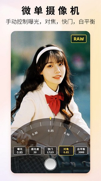 每次拍摄都能进行曝光、感光度、快门、对焦、白平衡等参数的设置,根据自己的拍摄效果来调整;