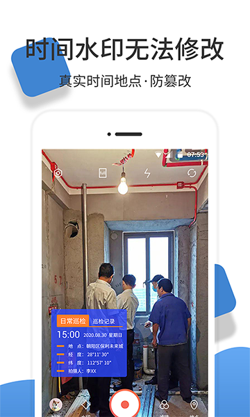 提供了工程安全巡检的拍照水印,可以对工程安全巡检进行水印拍照记录;