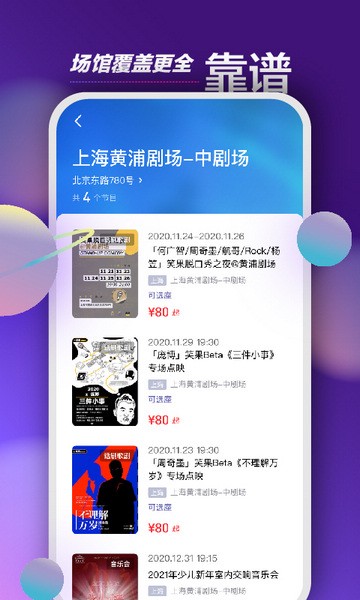 ·演唱会话剧等等的多种类型的演出都能提供门票购买的服务。