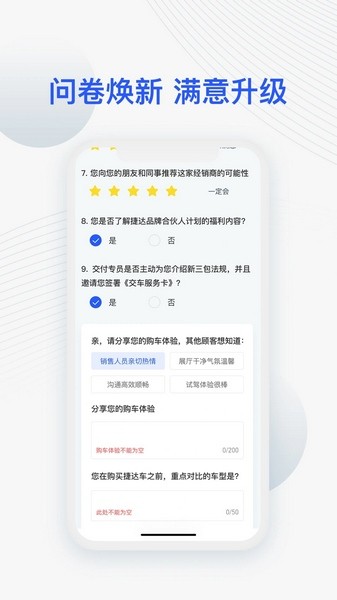 捷达汽车还提供了选车、购车、试驾等服务,用户可以在线查看多款车型的详细信息,并预约附近的4S店进行试驾或保养。界面设计简洁明了,操作起来也很方便。作为一个车主,我觉得这个软件真的很实用,尤其是远程控制功能和社区互动功能,让我对爱车的管理更加轻松。如果你是汽车爱好者或者正在考虑买车,捷达汽车绝对是一个值得下载的好工具!