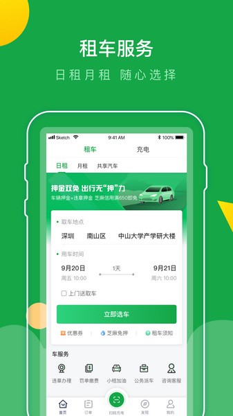 绿色出行,享用分时租赁带来便捷、经济、环保的简单生活。
