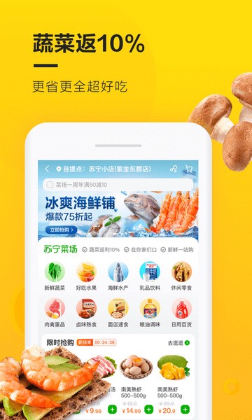苏宁小店APP是由苏宁官方推出的一款生活服务软件,覆盖全国70多个城市,接入4000多家线下门店,提供生鲜水果、零食饮料、早餐便当等各类商品,还有美食外卖和优惠活动。界面简洁易用,下单后最快1小时送达,会员还能享受专属价格和各种促销活动,比如限时抢购、满减优惠等。