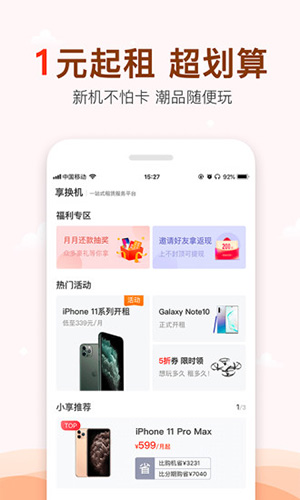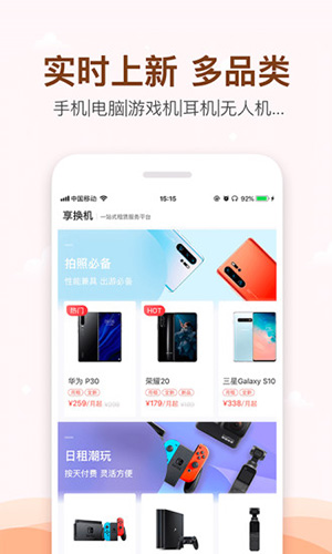 享换机APP是一个方便智能手机和其他数码设备租借、二手买卖的平台,跟很多大品牌和电商平台合作,比如芝麻信用、爱回收、京东这些,感觉挺靠谱的。用这个软件可以租到新手机,价格实惠,信用分够的话还能0押金租机,这对很多没太多备用金的人来说真的很方便。除了手机,他们还有电脑、游戏机、耳机、无人机等设备出租,满足各种需求。