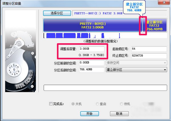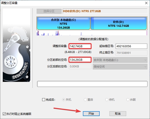 7、diskgenius设置好容量之后我们点击开始,等diskgenius合并分区处理完之后就可以了