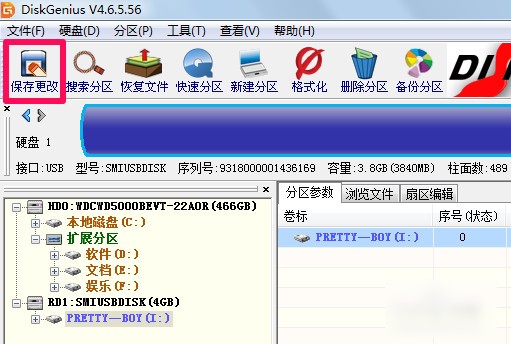 4、diskgenius删除分区后我们需要点击左上角的保存更改