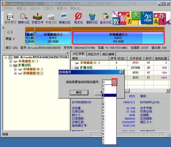 2、弹出窗口中选择自己需要指定的驱动器号,然后点击”确定“即完成修改