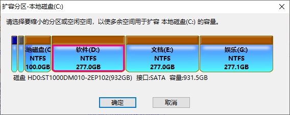 3、这里挑战分区容量,然后点击确定即可扩容成功