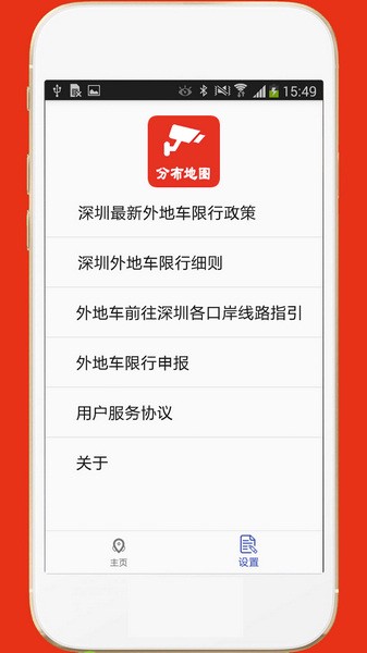 1、打开深圳外地车app官方版,可以在主页看到红色摄像头标注的地区就是深圳限行摄像头,