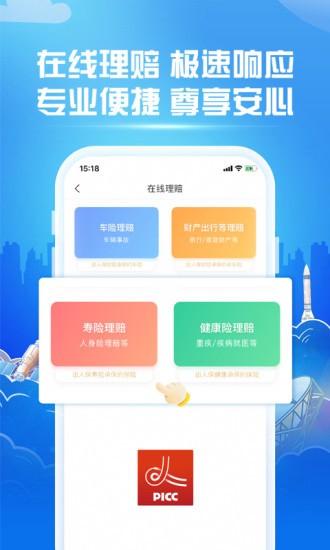 理赔服务:提供在线报案、理赔进度查询,在线7*24小时智能+人工咨询服务。