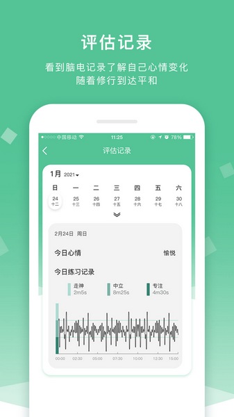 生成专业的脑电报告,监测你的正念历程;让你与正念老师同步,让系统学习更高效。