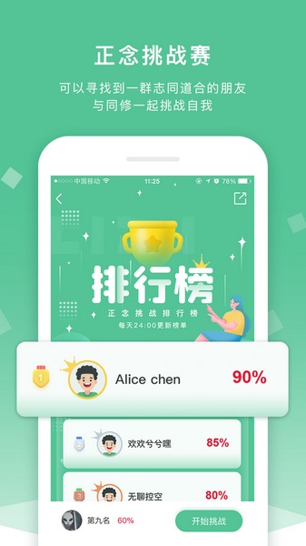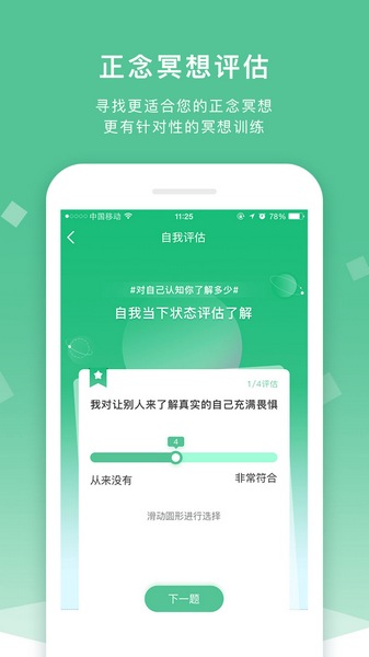 客观反馈问题,一键分享正念课程,操作玩法都很自由化;