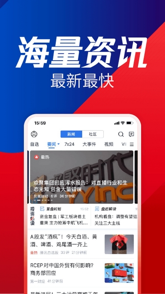 2、接着我们可以看看【资讯】栏目,在这里,有很多股票资讯,用户可以根据自己的需求进行选择阅读,遇到好的文章资讯还可以分享给好友哦