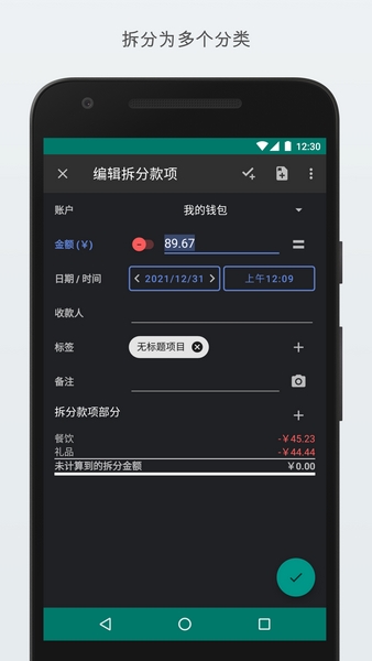 - 拆分交易:单个交易可以拆分成多个部分(转账或分属于不同的类别)