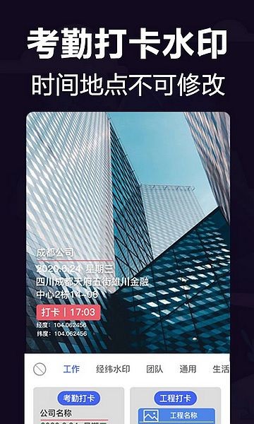 自动添加时间、地点、天气等信息,适用于外勤考勤、取证记录、工作汇报等需求。