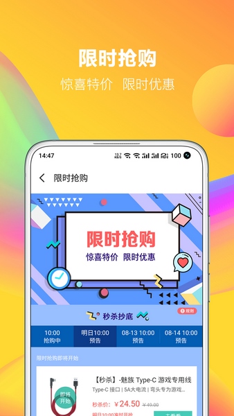 魅族商城APP是一款由魅族官方推出的手机数码商城,所有的魅族产品都可以在这里找到,无论是手机、耳机还是周边产品全都有,用户可以按照分类或者搜索来快速寻找自己想要的商品。同时在首页上还有大量的优惠活动,比如限时折扣抢购、砍价等,还有以旧换新的功能可以让用户将身边闲置的魅族产品回售给官方。