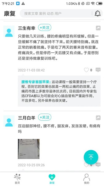 与若干团队深度合作,其中既有系统化的康复保养教程帮助大家避免病情加重和复发,也有国内骨科排名前列的北京大学第三医院骨科专家团队推荐的业界新近研究成果,为高烈度疼痛和重症患者提供较好的信息服务,如个性康复保养等等。