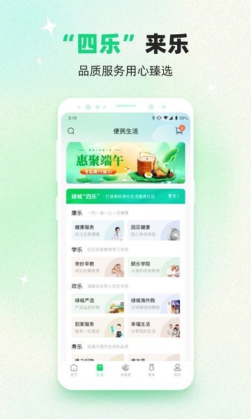 4、园区商圈,绿城生活是以满足业主日常生活需要为核心,基于绿城自有优质资源并通过严格的品控机制,整合社会优质资源,为业主生活提供全生活维度的生活服务。