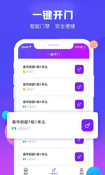 一键开门是指通过手机APP即可打开远程点击,打开小区门禁。