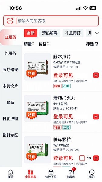 药约约客户端是一款专业安全的控销药品线上采购平台软件。这款软件为用户提供正规正版的各类药物,帮助用户能够轻松快速地购买到需要的药物,给普通用户更多的购药渠道,有更多寻找药品的方式。用户还能够在平台向专业医师咨询用药方法,得到医嘱后再去购药用药。用户在下单后平台会立即安排物流配送药品,软件给用户带来了极大的便利。