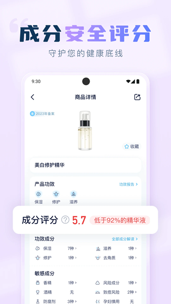 4、提供了对各种化妆品成分的解释和评级,方便您更好地了解产品成分的危害、有无过敏成分等信息;