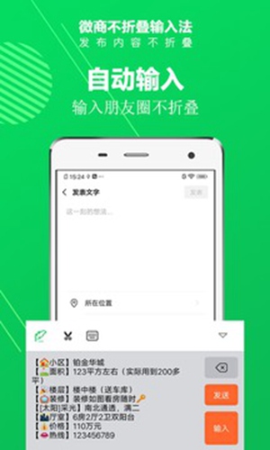 不折叠APP是一款主打文字快捷输入的软件,界面简洁清爽,功能丰富强大,支持自动输入文字,且不折叠,排版整洁阅读感舒适!同时软件能随心修改切换内置输入法,让你使用更熟悉的输入方法!此外软件还支持复制朋友圈发布的文案,快捷复制内容,原文一键粘贴,让宣传营销更加轻松!赶紧下载体验吧!