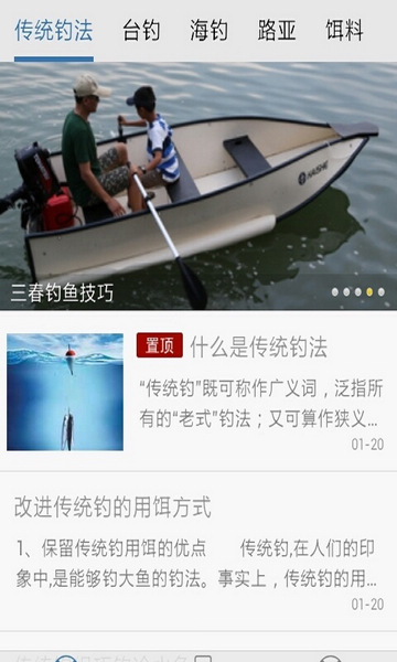 海钓、淡水钓、路亚、矶钓等十余种钓法图文解析,涵盖钓鱼天气、钓点钓饵选择、钓鱼装备等深度内容。