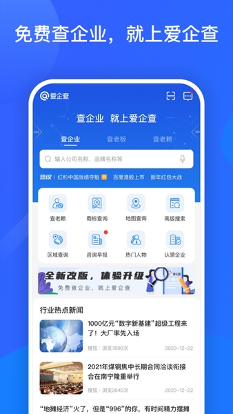爱企查app作为专业的企业信息查询软件,用户可以在这里查询任意公司的信息,还能将其导出。信息包含该企业的成立时间、联系方式、地址等等,此外还能查看企业的股东、高管以及旗下的项目,真的是相当全面。而除了查企业之外,软件也支持直接查询老板或老赖的信息。这里还有很多相关的热点新闻可以浏览。