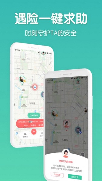 一键求助:向紧急联系人发出求助,并持续共享自己的位置