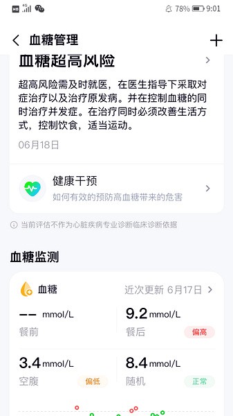 3、对身体的健康风险分级,用户可根据建议的方案调整生活习惯;