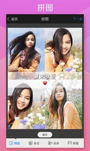 2、长方形拼图,正方形拼图,自由拼图,圆角拼图,100多套模板选,无数的拼图背景可用。更有创意拼接,拼接也可以选择杂志风格的模板,告别呆板的传统拼接。