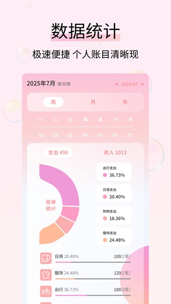 支持使用软件记录自己的消费数据,在里面能够实时记录更多重要的数据;