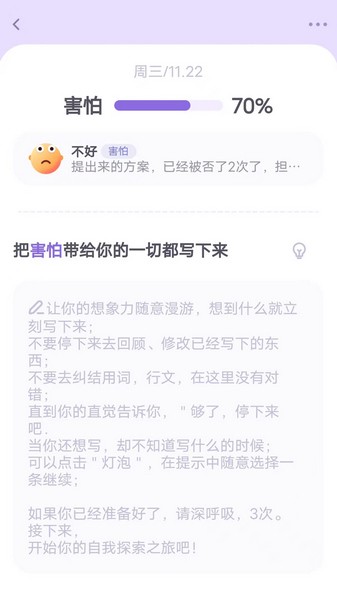 操作起来也很简单,记录心情只需要几个步骤就能搞定。最近更新的“书写+心理学”功能更是让我爱不释手,感觉生活变得更加积极了呢!总之,这款App真的对管理情绪很有帮助,值得试试哦!