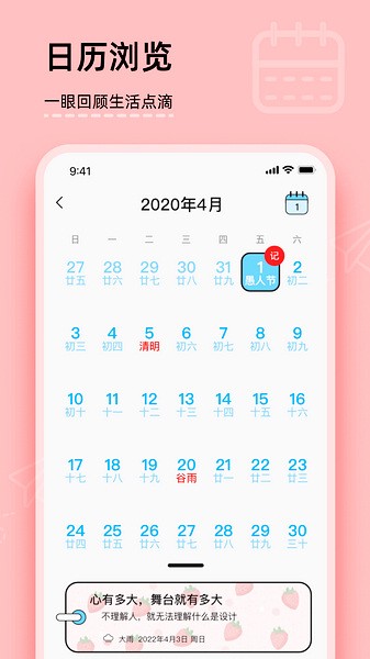1、时间轴展示: 你的日记以时间轴的方式展示,让你一目了然地回顾过去的点滴,仿佛时光机般带你回到过去。