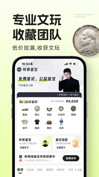 1、一键上传鉴定:用户可以通过手机拍摄藏品图片并上传至软件,由知名IP“听泉鉴宝”的专业文玩收藏专家团队进行实时鉴定。