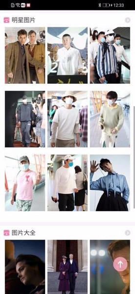 3、查看更多的明星图片内容,或返回下拉查看下面的图片大全内容
